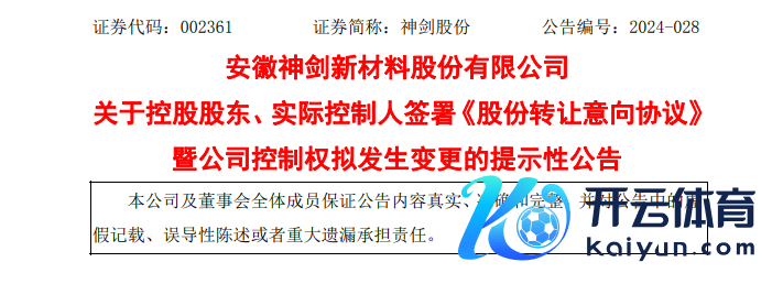 关于此番控股鼓动及实控东说念主拟变更事项,神剑股份仅暗示,本次《股份转让意向左券》为公司控股鼓动偏执一致手脚东说念主与合营方之间的股权交游举止,不会对公司2024年度计较功绩产生影响。