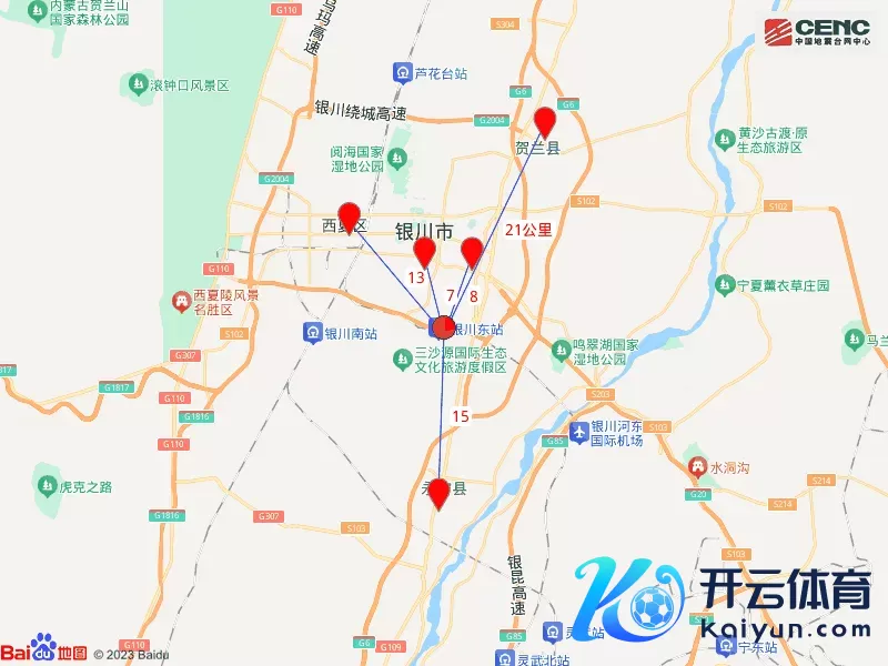临近县城:震中距金凤区7公里、距兴庆区8公里、距西夏区13公里、距永宁县15公里、距贺兰县21公里,距银川市7公里。