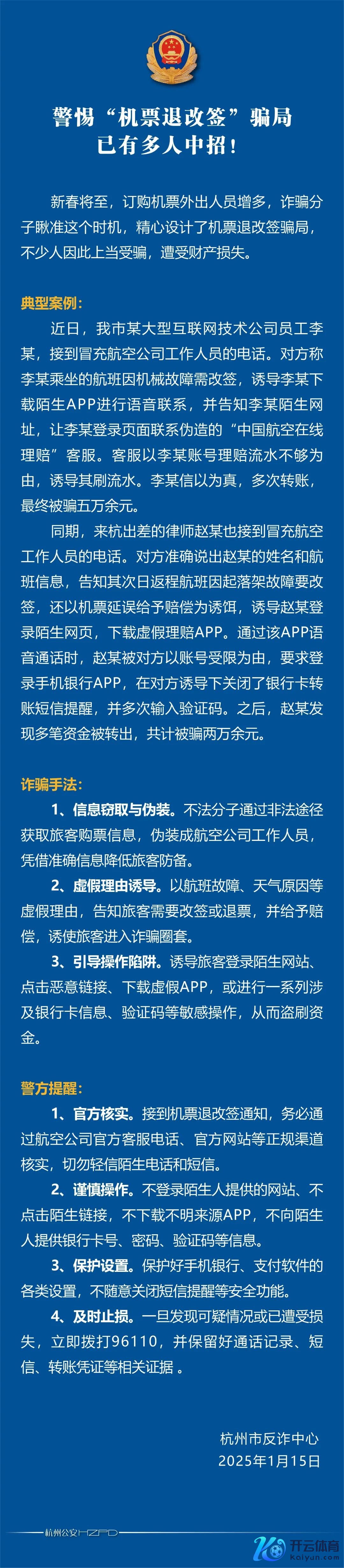 Kaiyun科技股份有限公司“机票退改签”骗局,已有多东谈主中招!警方蹙迫请示!-Kaiyun (中国)智能科技股份有限公司官网