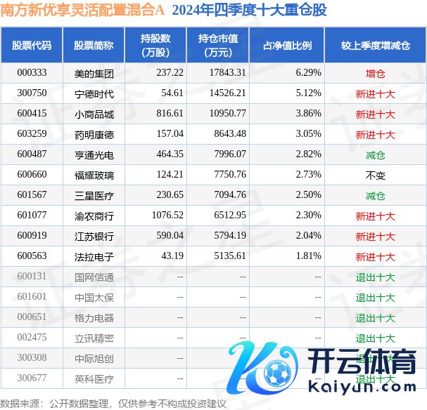 南边新优享机动成立羼杂A为羼杂型-机动基金,阐明最新一期基金季报久了,该基金财富成立:股票占净值比83.41%,债券占净值比5.01%,现款占净值比10.6%。基金十大重仓股如下: