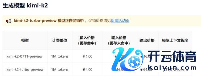 月之暗面于 8 月 1 日推出 Kimi K2 高速版(Kimi-K2-turbo-preview),其参数与 Kimi-K2 一致,但输出速率从每秒 10 tokens 提高至 40 tokens。咫尺,该模子处于五折优惠期,9 月 1 日后恢回应价,届时输入价钱(缓存射中)为 4 元 / 百万 tokens、未射中为 16 元,输出价钱为 64 元。