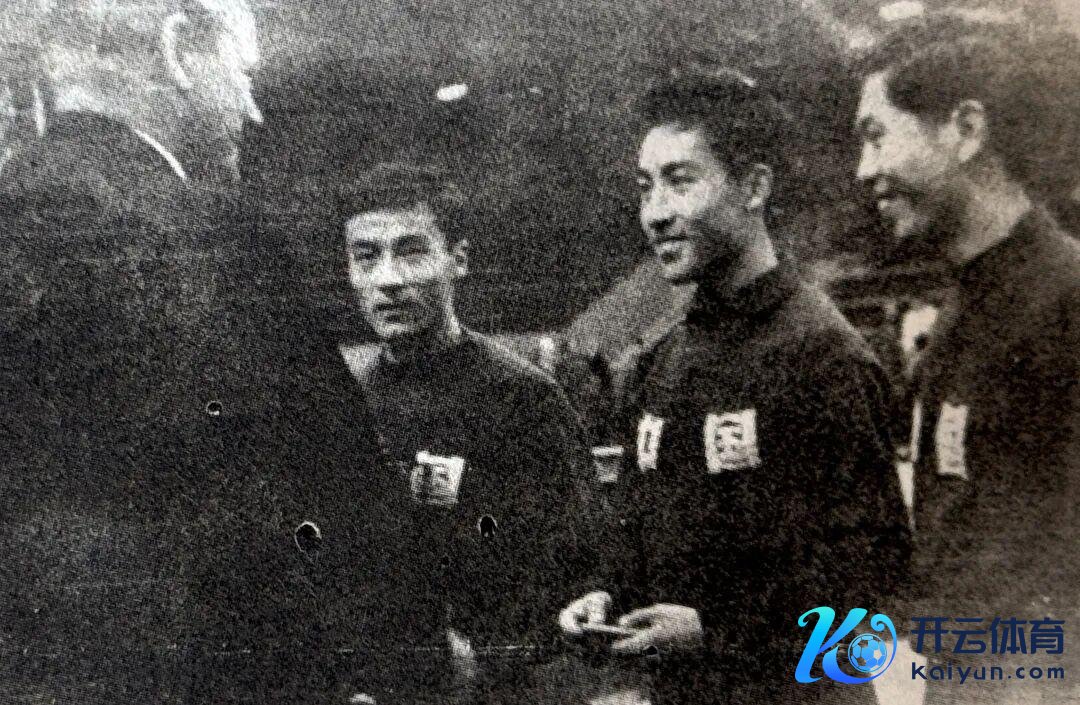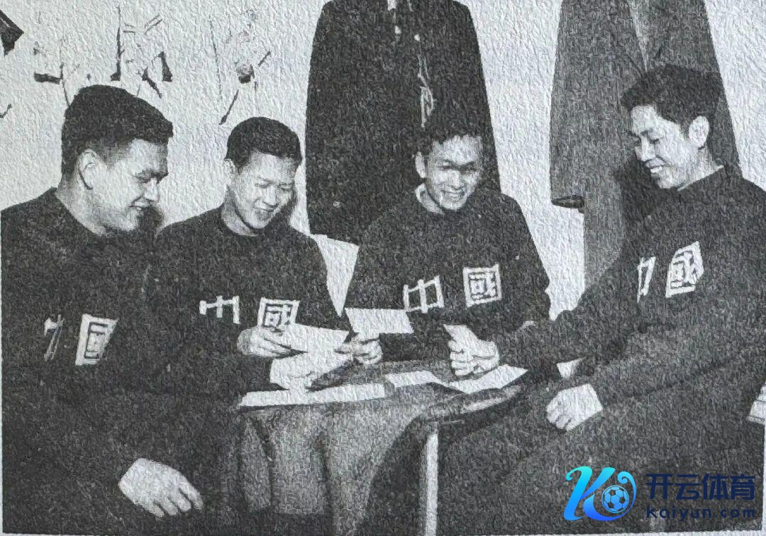 1956年第23届世乒赛,庄家富(右一)与队友们在一齐。